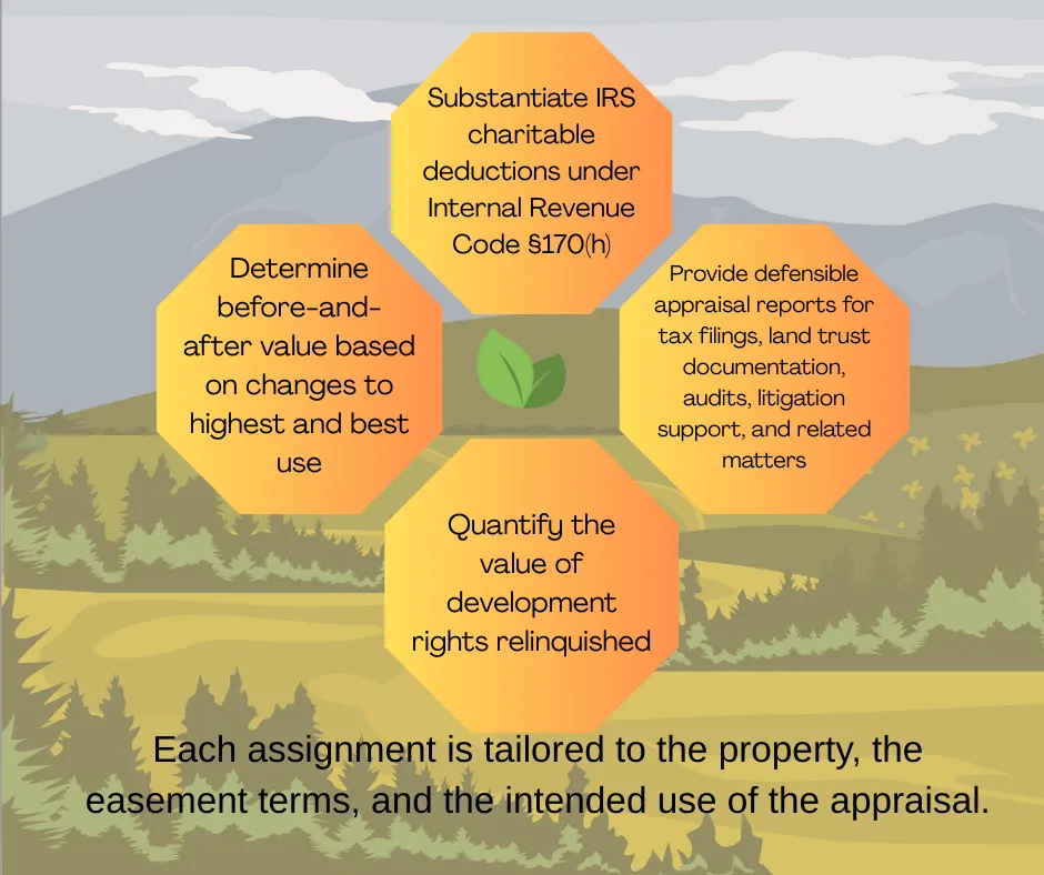 -Valuation support for estate planning, settlement, and reporting involving conservation-restricted properties.